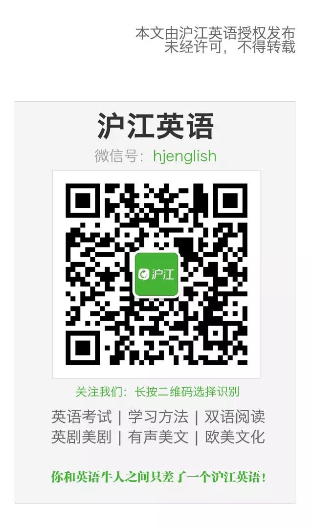 本文系授权发布,From 沪江英语,微信号:hjenglish,未经许可不得转载,北美学霸君诚意推荐。