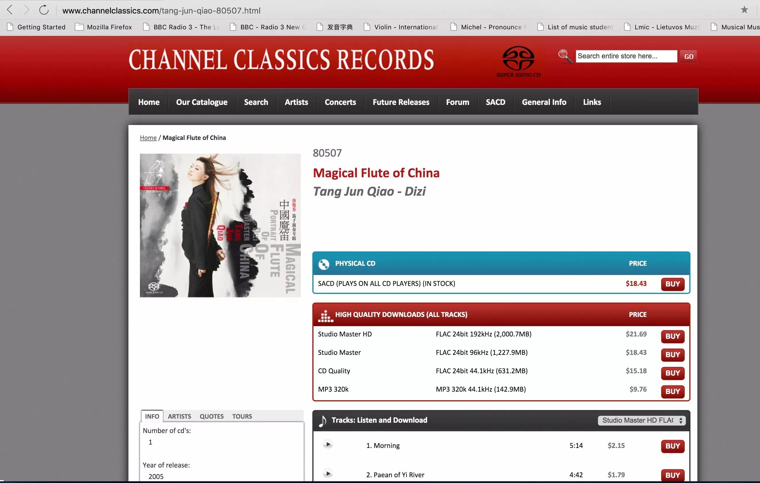 唐俊乔在Channel Classics公司出版的专辑《中国魔笛》