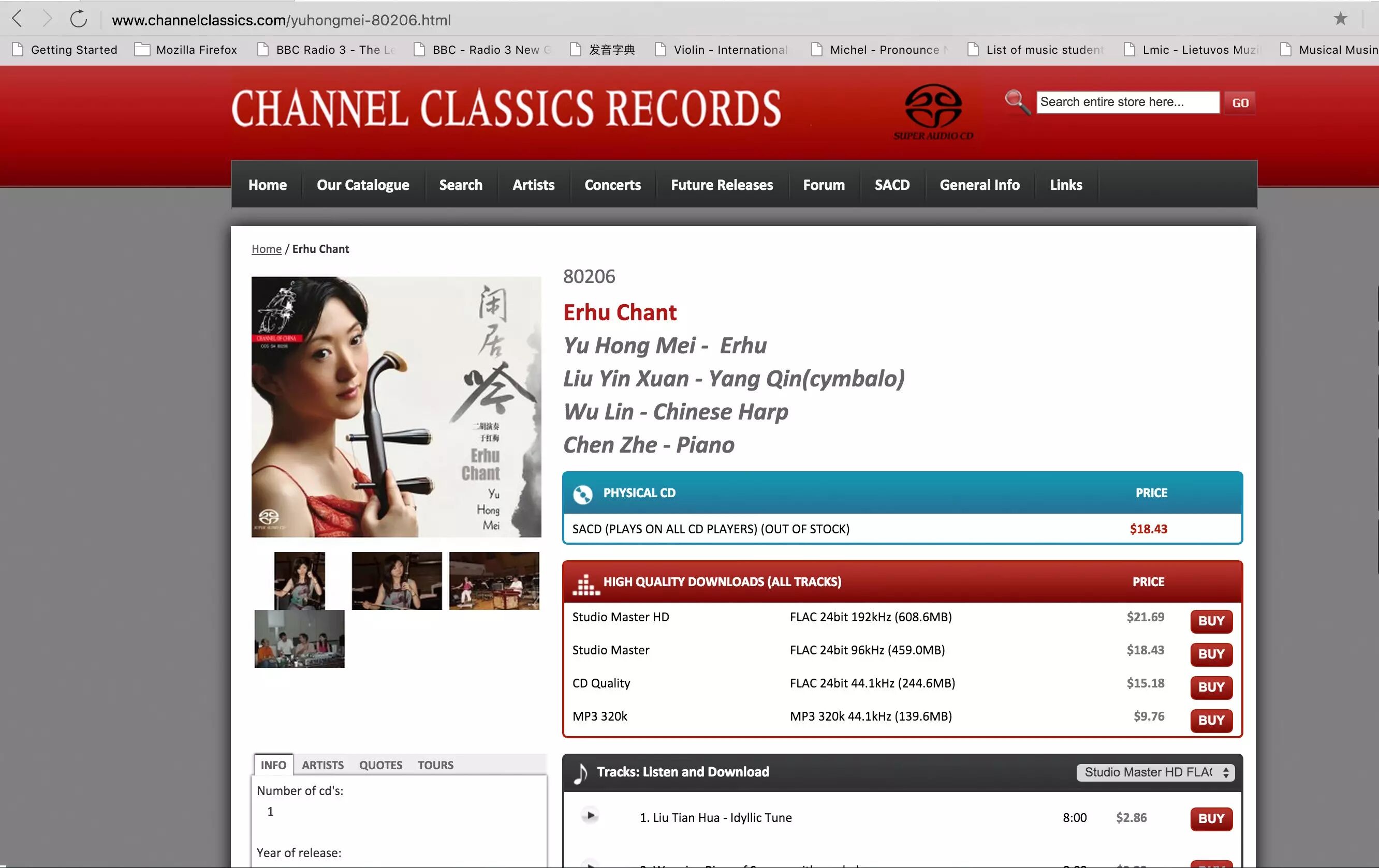 于红梅在Channel Classics出版的专辑《闲居吟》