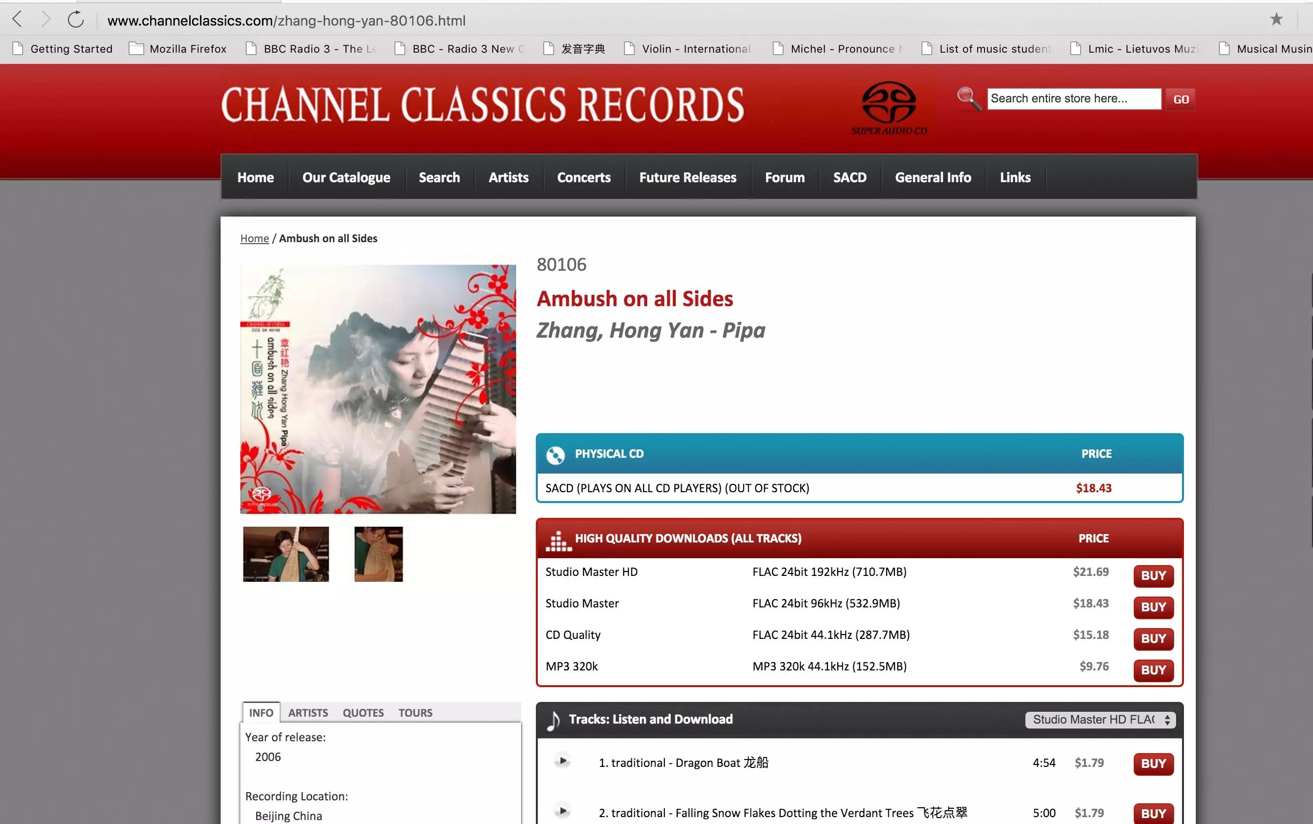 章红艳在Channel Classics公司出品的琵琶独奏专辑《十面埋伏》
