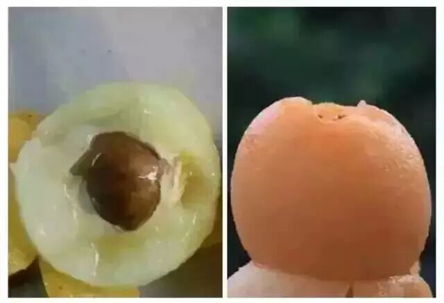剥皮后,西山青种枇杷果肉是白色的,外地枇杷果肉是橙红色的。(还有一种白沙和早黄口味也同样没有青种好,价格稍低)