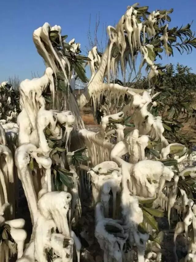 太湖边被冻的最厉害的枇杷树,整个被冰拥入怀中…