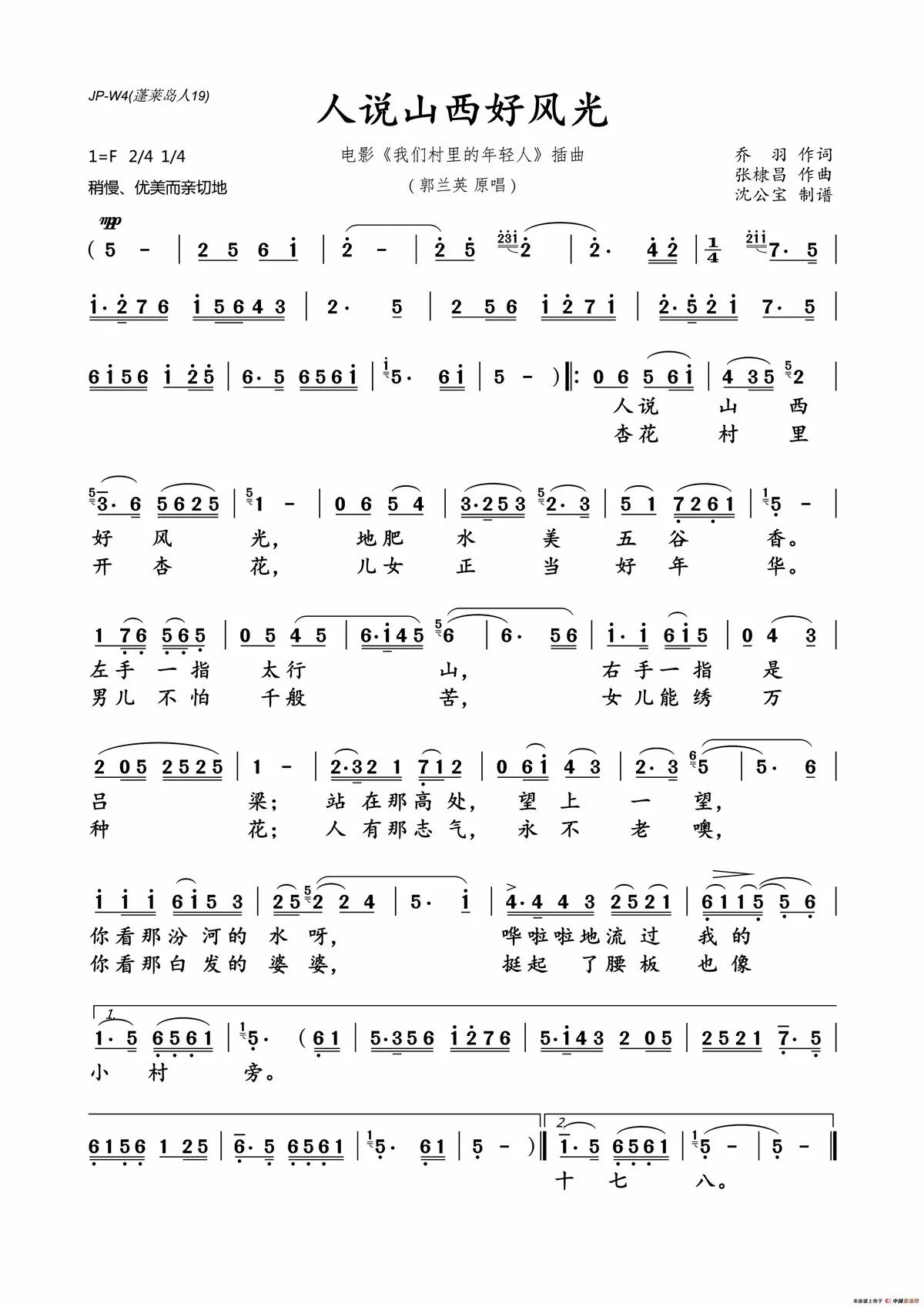 《人说山西好风光》是张棣昌谱曲、乔羽作词,郭兰英演唱的一首山西民歌。创作于1959年,20世纪60年代开始唱遍大江南北,是中国民歌的经典之作。这首作品清新自然、婉转流畅,把民歌风味与时代精神融合得恰到好处,表现了人们对家乡的热爱之情和斗志昂扬的精神面貌。