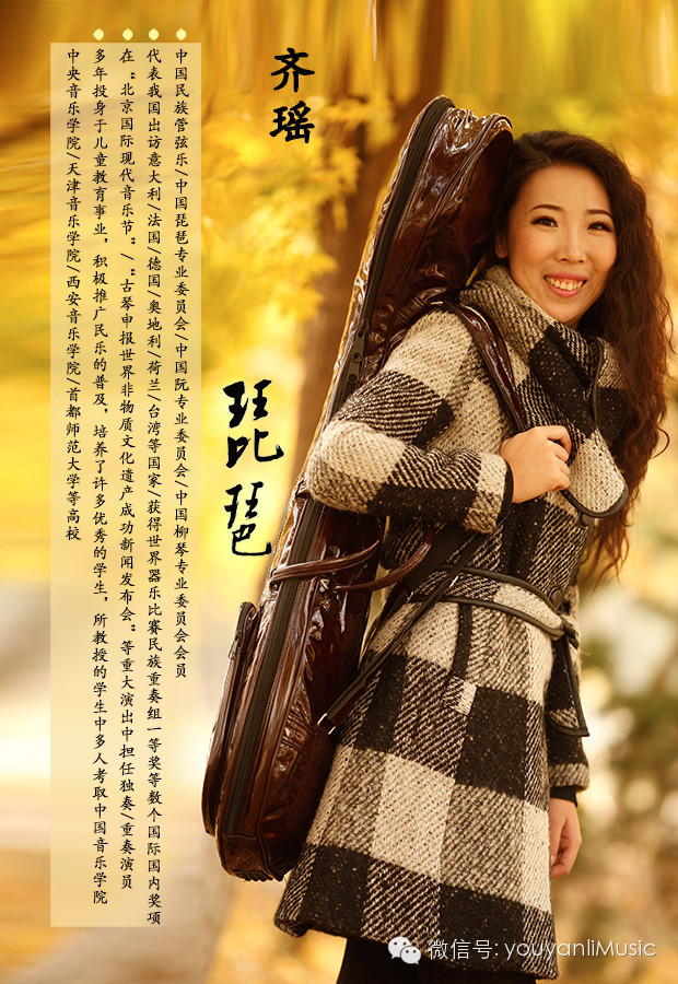 大家好,本期专家讲堂非常荣幸请到了青年琵琶演奏家齐瑶老师作客我们微信群,齐瑶老师除了忙于教学、演出、排练等工作外,以推广中国传统音乐(尤其给孩子普及)为己任,对于她能在百忙之余来为我们讲解、普及中国传统音乐,在此致以真挚地感谢!