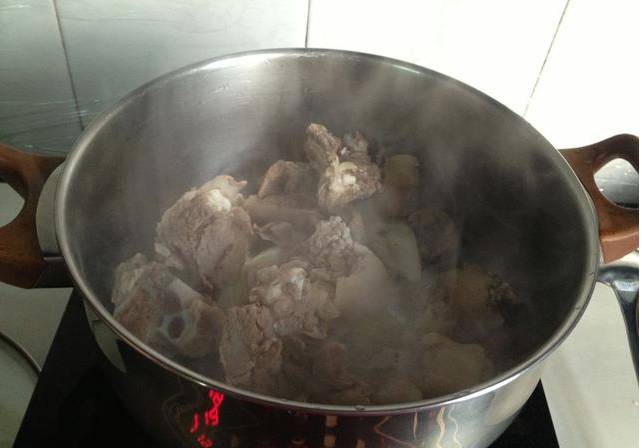 1,羊肉在水中煮开后去除血水捞出洗净