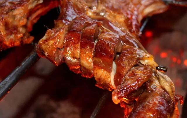上桌必须得有酥脆的羊皮,表面还泛着油光。