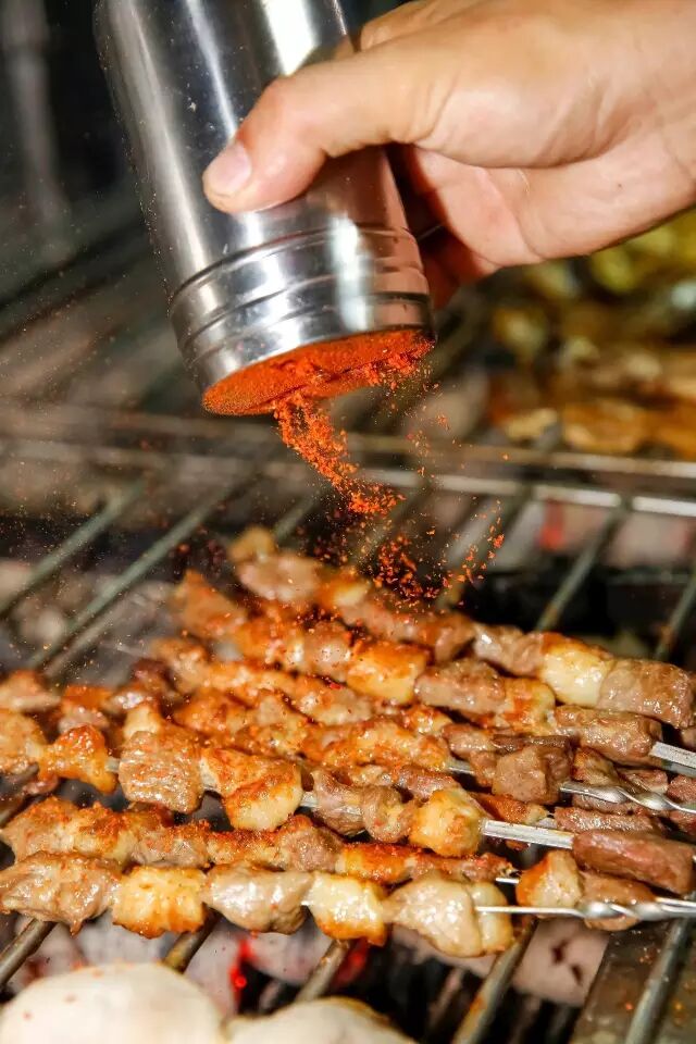 烤的过程中不断刷油→撒秘制调料→撒孜然,