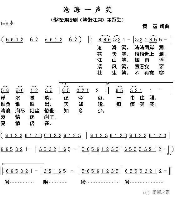 沧海一声笑(电视剧《笑傲江湖》主题曲)简谱该歌谱演奏者为许冠杰,歌曲名称为沧海一声笑,歌谱类型为简谱。《沧海一声笑》是由黄沾作词和谱曲。歌曲发行于1990年5月1日,是影片《笑傲江湖》和《笑傲江湖2之东方不败》的主题曲,分为粤语版和国语版。国语版由黄沾、徐克、罗大佑演唱,粤语版由许冠杰演唱。