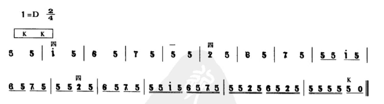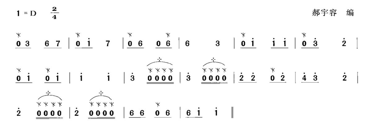 拍——标记为“L”,用右手大指指肚从弦的下面将弦勾起,并快速放开,使弦发出“啪”的击打声响,似弦断声。多用来模仿放炮声,此指法在武曲中用得较多。