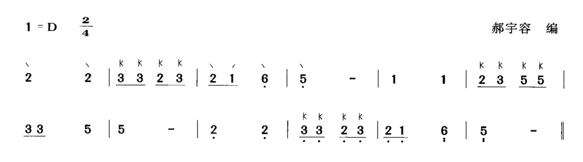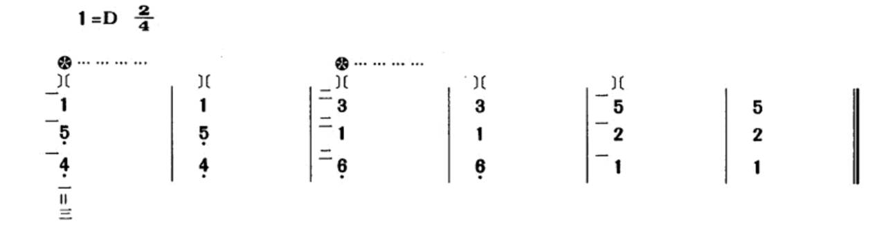 注:(1).将一弦推到二弦旁,同时将二、三弦挽到一起,与一弦并在一起发声。