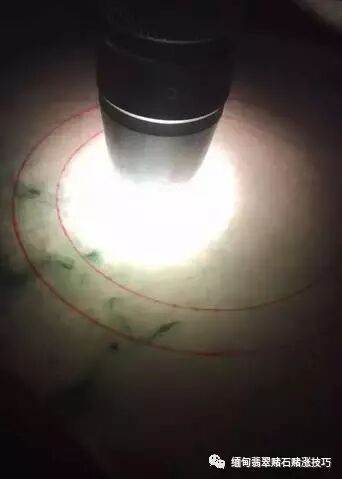 1、从开了口的地方打光看,看看色进去多少,进的越深,越好。
