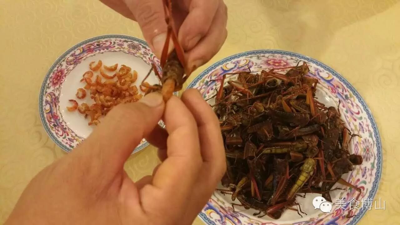 后来随着环境的变化,蚂蚱也越来越少了。听大人说是因为喷洒农药所致。博山人爱面子,更讲究待客的礼数。炸一盘蚂蚱虽然算不上什么大件名菜,但毕竟还是山珍美味,用来待客总是有讲头且倍感体面。尤其是博山当地人自古就有吃蚂蚱的传统,若是遇到外地食客心存担忧时,必定群起公关,大加示范,众口海夸让你非尝不可。尤其是过年,谁家要是能上一盘炸蚂蚱,那可是非常体面、非常尊贵的待客大礼。