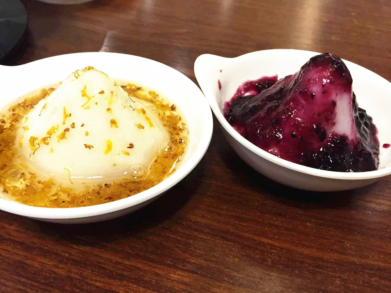 新鲜的山药泥,口感软糯细腻,清香的山药口味,尝上一口,唇齿间久久绵延。所谓“双色”则是店家对口味的独到改良,蓝莓的浓郁、桂花的幽香,厚厚一层淋在山药上,口感与一种叫做“绵绵冰”的冷饮极为相似,甜而不腻的惬意之情,尽在这碟“双色山药”中了。