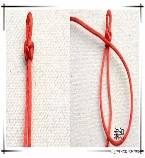 这个结有两种表现方法,一种是前面做扣,一种是后面做扣。第一种呢,首先将一根绳子弯曲成葫芦状,就是上大下小。