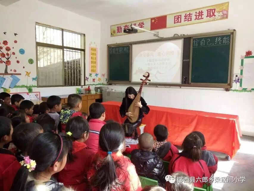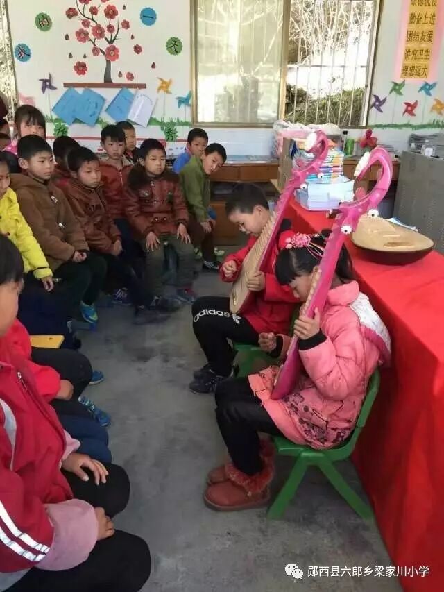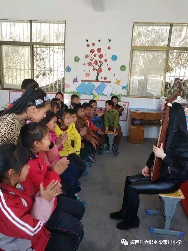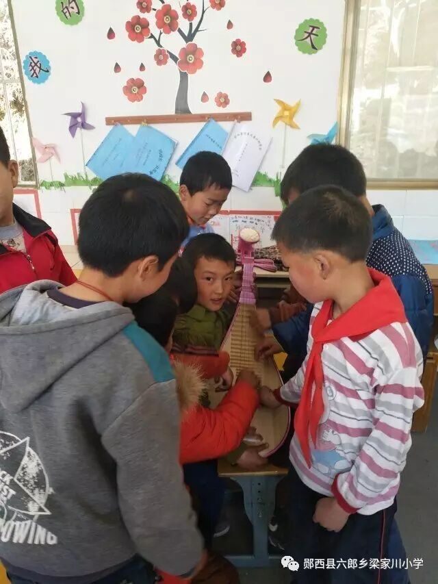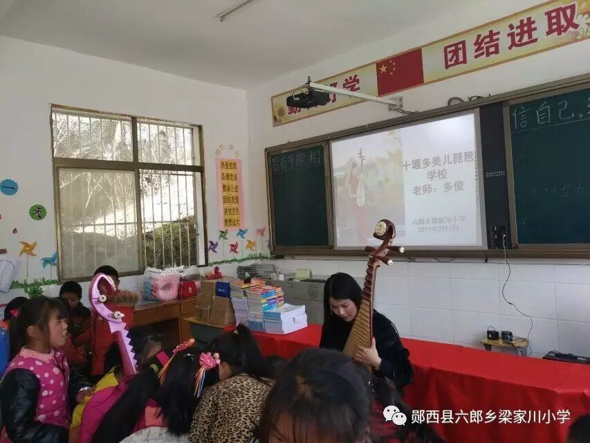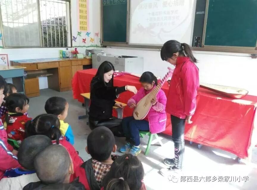 多俊老师为三四年级的孩子们上了一堂琵琶课。课堂上,美丽的多俊老师示范了《女儿美不美》的曲目,孩子们听得连连叫好。接着,多俊老师给孩子们教授了简单的琵琶乐符,孩子们学的很仔细。后来,多俊老师更是从车上取下来了许多小琵琶,让孩子们两两练习。孩子们学的是那样的认真,深怕下课铃打响而破坏了这份美好。