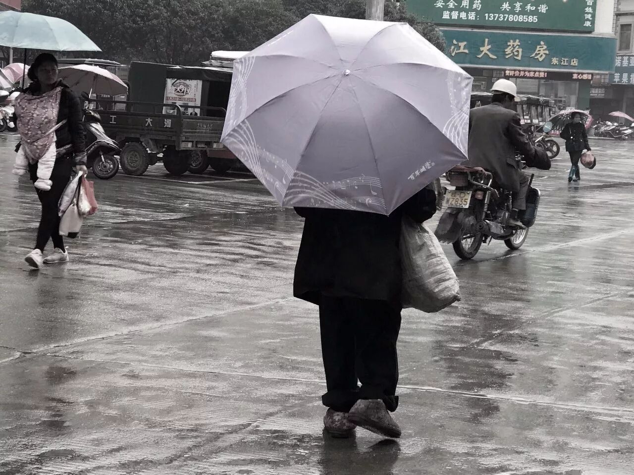 而他却穿着一双被雨水沾湿的棉鞋在雨中行走