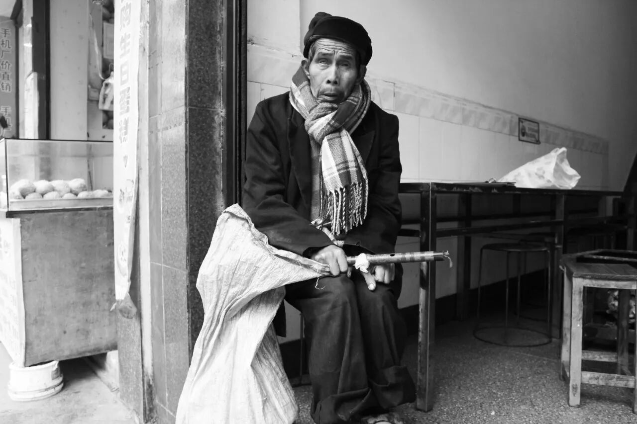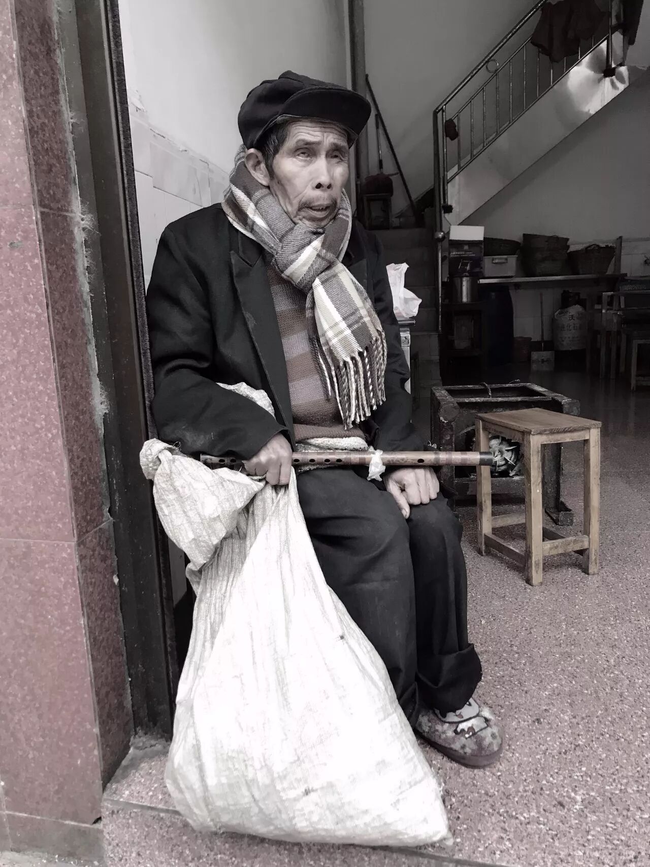 兴致来的时候老伯会拿出陪伴了他好几年的笛子来上一曲
