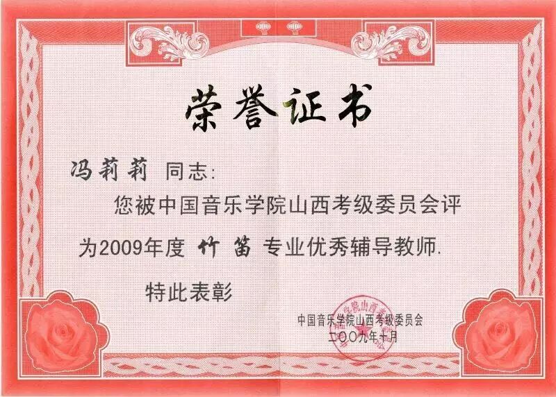 冯莉莉,吕梁市首位竹笛国家三级演奏员,中国民族管弦乐协会会员,山西省音乐家协会会员