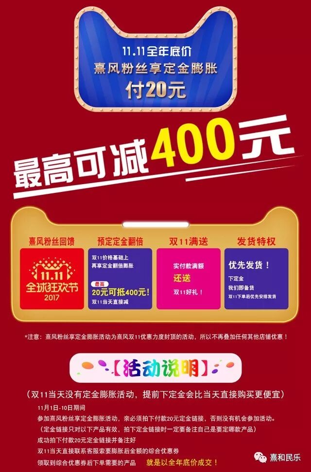 熹风粉丝们,预定定金膨胀活动双11封顶优惠价格,不再与其他优惠券共享,可以保证全年最低价!