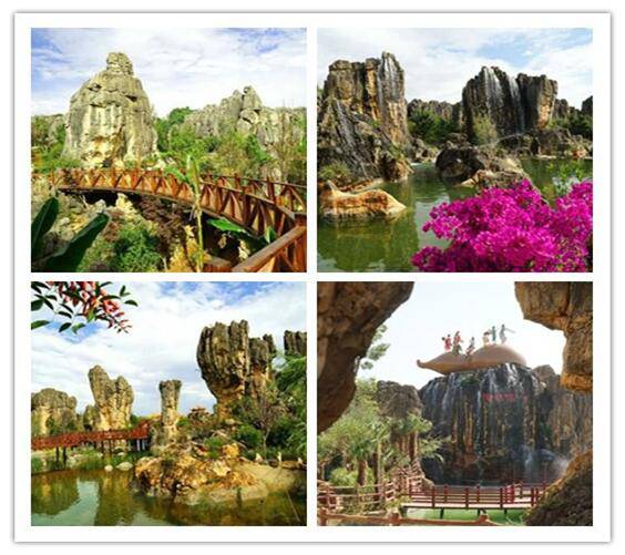 石林杏林大观园旅游度假风景区,座落在阿诗玛的故乡——石林,景区以黑石林为旅游主体,其景观石头各异,千姿百态、山、石、水相影,绿树山花遍地,身临其境,让人流连忘返。,宽30~80米的黑石箐,呈石林状态,石块千奇百怪、婀娜多姿。