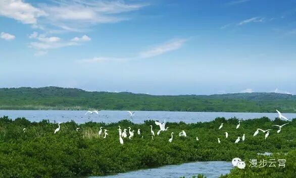 放眼远眺,郁郁葱葱的红树林恍如漂浮的水上绿洲,在海风吹拂中,“绿”浪起伏,令人叹为观止。