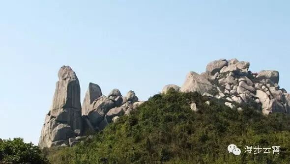 在其海拔1050米顶峰附近,崇山峻岭,悬崖峭壁,到处是乌黑色花岗岩和流纹岩,遍地是林立的兀石器。