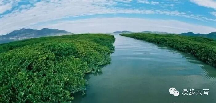 涨潮时,这些树木被海水吞没,或者仅仅露出绿色的树冠,站在漳江出海口的海堤上。