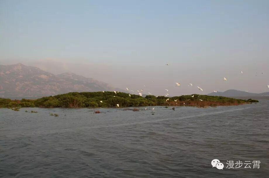 各种鸟儿在远处的入海口嬉戏,只能远观,近不得身。