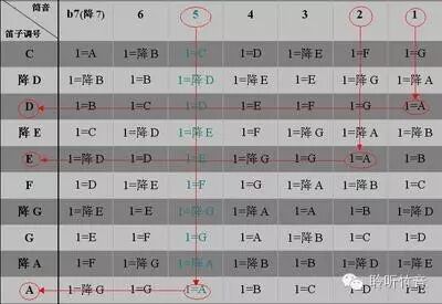 Z是曲目的调性,1=C,1=D,1=#F……这个公式很好理解,笛子调性的差=指法调性的差。例如表二中取F调的笛子演奏C调的曲子应该取筒音做1的指法,带入公式验证为: