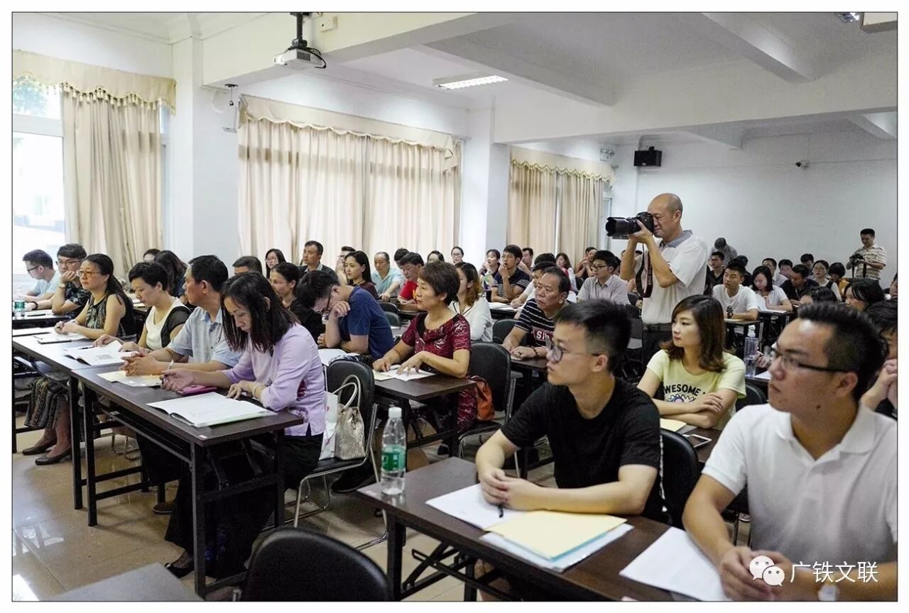2017年9月21-23日,广铁职技继续教育学院教学楼3楼,不时传出哗哗的热烈掌声。80多名来自广铁集团各单位的文学音乐爱好者,欢聚一堂,参加由广铁文联组织的《企业文化暨文艺创作培训班》。课程内容丰富,既有文学讲座,又有音乐欣赏。每一位教授老师的精彩讲课,都让学生们如沐春风。最后,同学们以一场有声有色的演出,把这文学与音乐共舞的培训班结束在欢声笑语中。