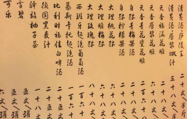 翻开菜单,竟是竖排毛笔字