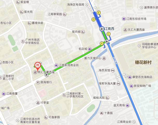 【交通指引】地铁2号线江南西A出口出来后直走450米到润汇大厦