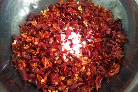 干辣椒不能用水洗。不可以有水,不然存放的时间长了会坏,一定要菜油。食用油不会香的。