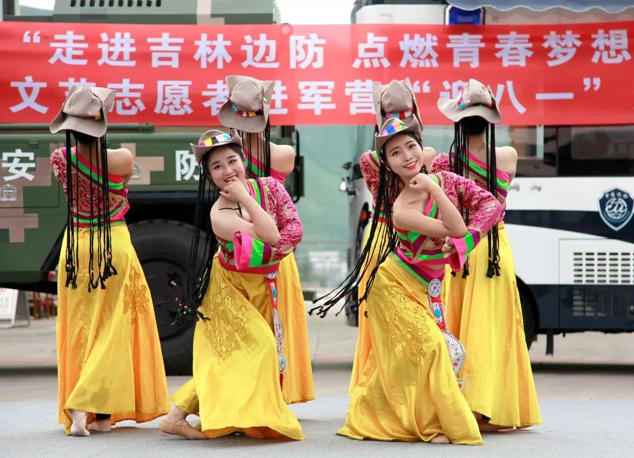 7月17日,“走进吉林边防·点燃青春梦想”大学生文艺志愿者进警营“迎八一”文艺汇演在图们边检站隆重举行。图们边检站、延边支队机动大队二中队全体官兵及官兵家属,来自广东石油化工学院、北方民族大学的文艺志愿者,驻地新华街道群众参加本次活动。