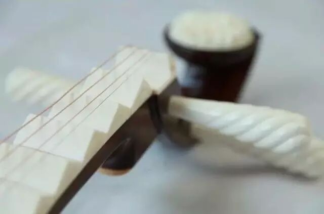 覆手的材料现在都用竹质的,过去也有用象牙牛角、红木、紫檀木等材料的。 覆手的上口的厚度要稍薄一些,缠弦侧可稍厚些,子弦侧宜稍薄些。覆手的子弦左侧开的槽不要太窄,太窄会在换装弦线时让子弦过不去,也就失去开槽的目的了。同时子弦左侧开的槽线的底部有倒角。