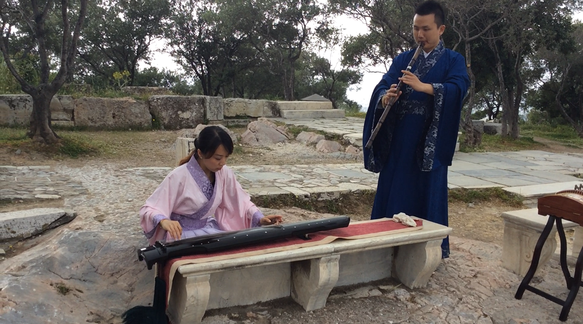 文化社举办的第一次活动,就是上巳节雅集。农历三月三那天,在面对着雅典卫城的Fillopapos山上,大家交流琴、箫、筝、武术、茶等中国传统文化元素。那次活动,算是我们在希腊传统文化活动的开端,后来也受到了很多希腊和国内媒体的报道。