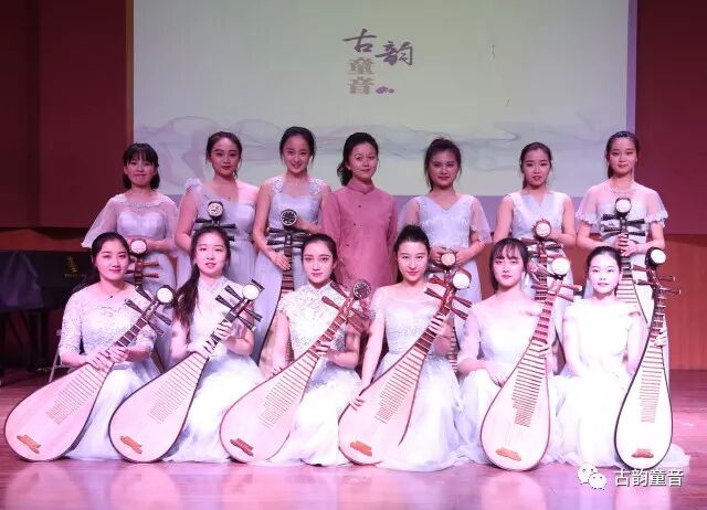 “古韵童音”琵琶重奏组合由南京艺术学院童莹副教授于2017年12月在学校室内乐选修课的基础上组成,成员主要为南京艺术学院中国乐器演奏专业的本科学生,特邀南京艺术学院刘石教授任组合艺术总监。