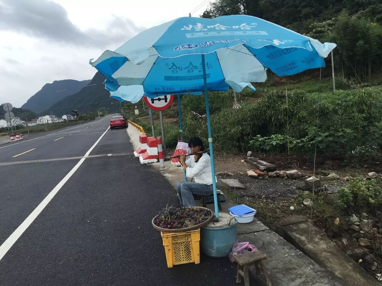 葡萄是小姑娘家种的,每年到葡萄成熟季节,她都会撑着雨伞在路边卖葡萄。最近,她喜欢上了笛子,所以一边自学吹笛,一边卖葡萄。小姑娘笛子吹的一般般,但她学吹笛子的想法还是不错的。