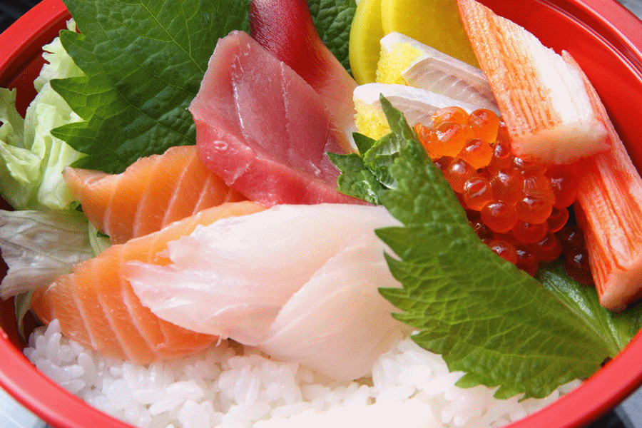 这一份是热爱海鲜的你的最佳选择,三文鱼、金枪鱼、希鲮鱼、北极贝、甜虾等美食全部加入其中,如果你有选择综合症,不然来一份全民丼,想吃啥吃啥。