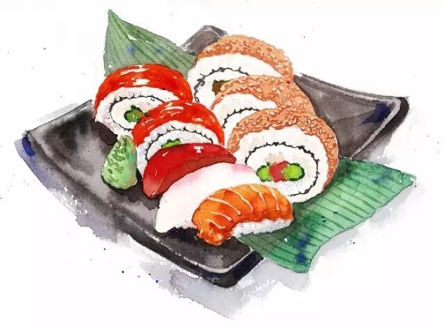 2枚龙虾酱寿司、2枚北极贝寿司、2枚油杨、2枚火焰寿司、4枚小卷,好朋友就是一起分享所有的美食。