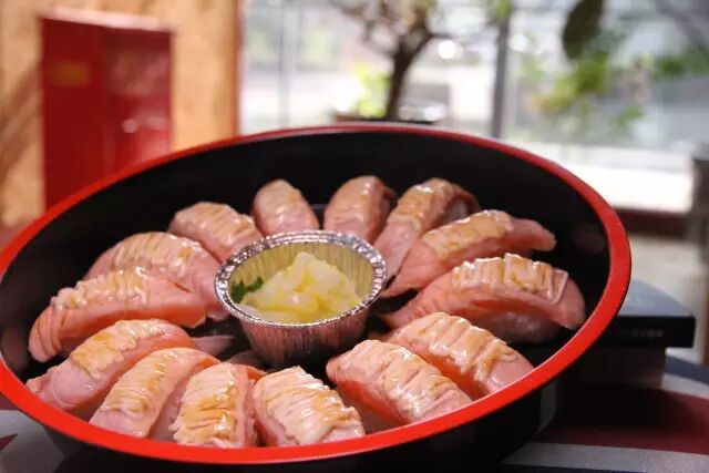 14枚火焰寿司,火烤过后的三文鱼入口即化,这是一场美的盛宴,配上蟹子目鱼,深受美食家们的喜爱。