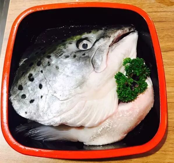 鱼头盛宴,11.99块,半个处理好的,洗干净的三文鱼头,划算,超大半个。菜场买半个胖头鱼估计也比它贵,这居然还是三文鱼!