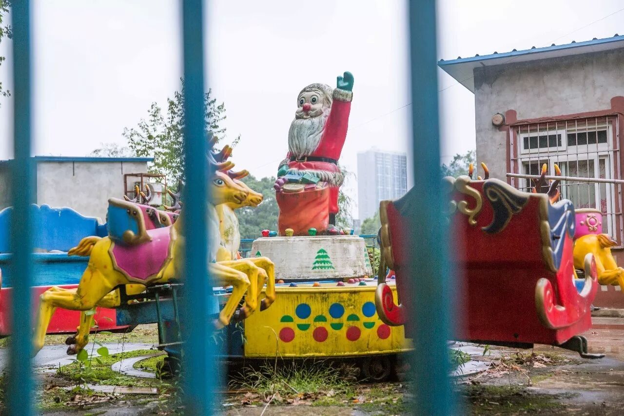童年的公园如今已是一番没落的景象,圣诞老人依然立在中心向每个小朋友招手,尽管他已经浑身是泥,在杂草中锈迹斑斑。