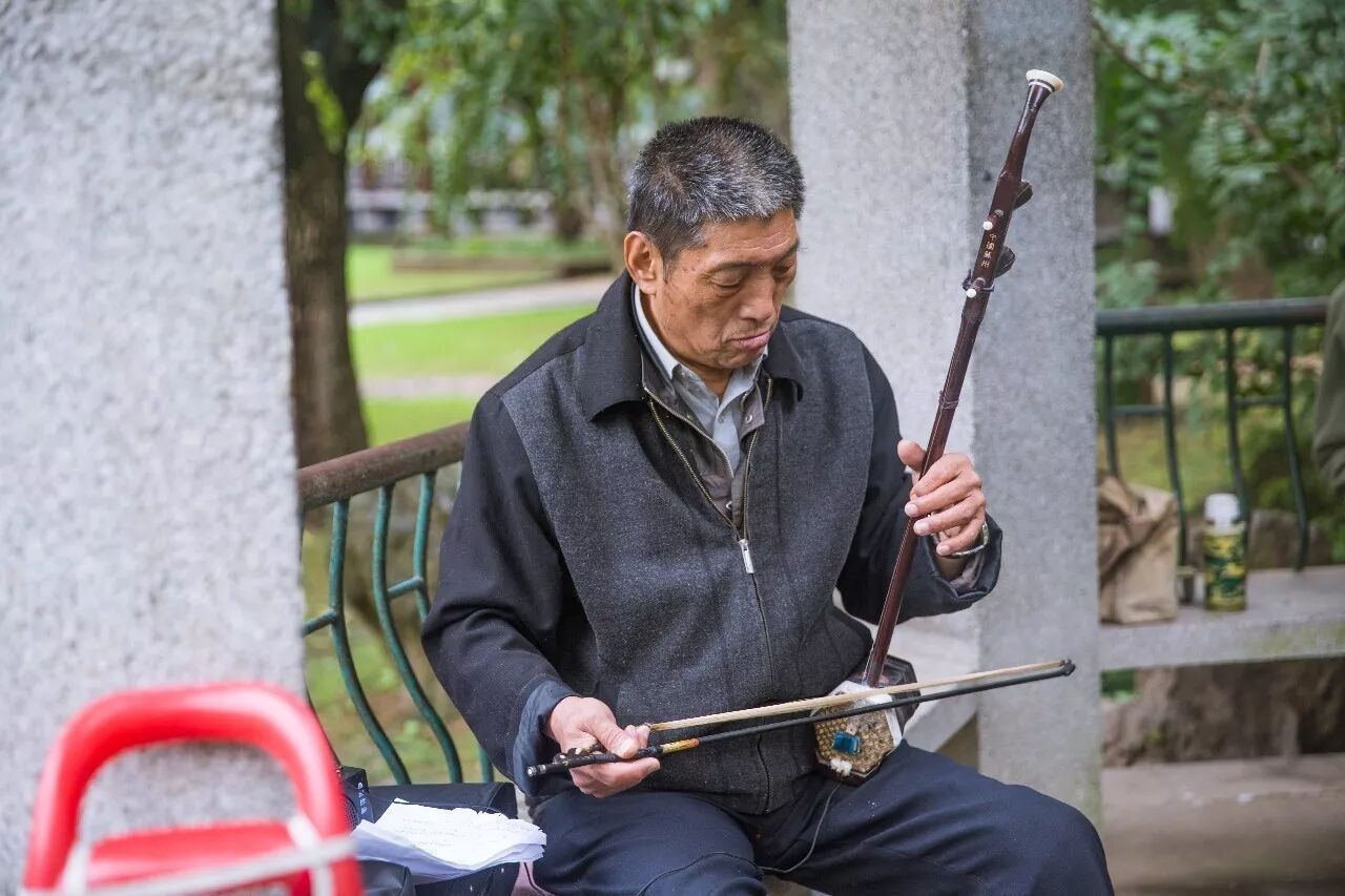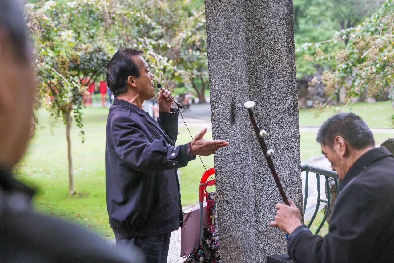 我们循声走近,大叔并没有因为有陌生人而怯场,用情之投入,姿态之标准,确有“小型演唱会”的感觉。
