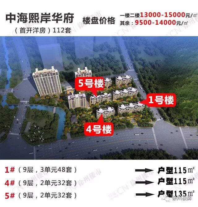 中海熙岸华府本次首开的房源为洋房1、4、5#,总共首开112套。其中1#总共48套,户型面积约115㎡,3个单元一梯两户;4#为2个单元,总共32套,户型面积约115㎡;5#为2个单元32套,,户型面积约135㎡,价格(请看公示),目前依然可以接受验资,洋房40万,开盘时间待定(随时准备开盘)