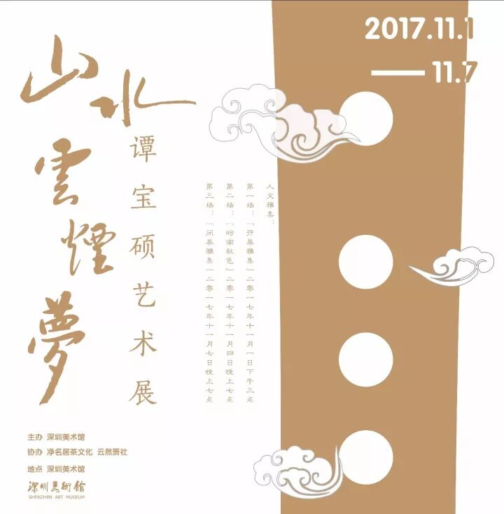 展覽期間還將在展覽現場舉辦三場人文雅集,譚寶碩先生及其學生將與觀眾分享和交流關於傳統文化與當代生活的話題,其中譚寶碩先生將出席第一場開幕雅集和第三場閉幕雅集,第二場以“嶺南秋色”為主題的雅集將由淨名居茶文化和雲然簫社策劃。