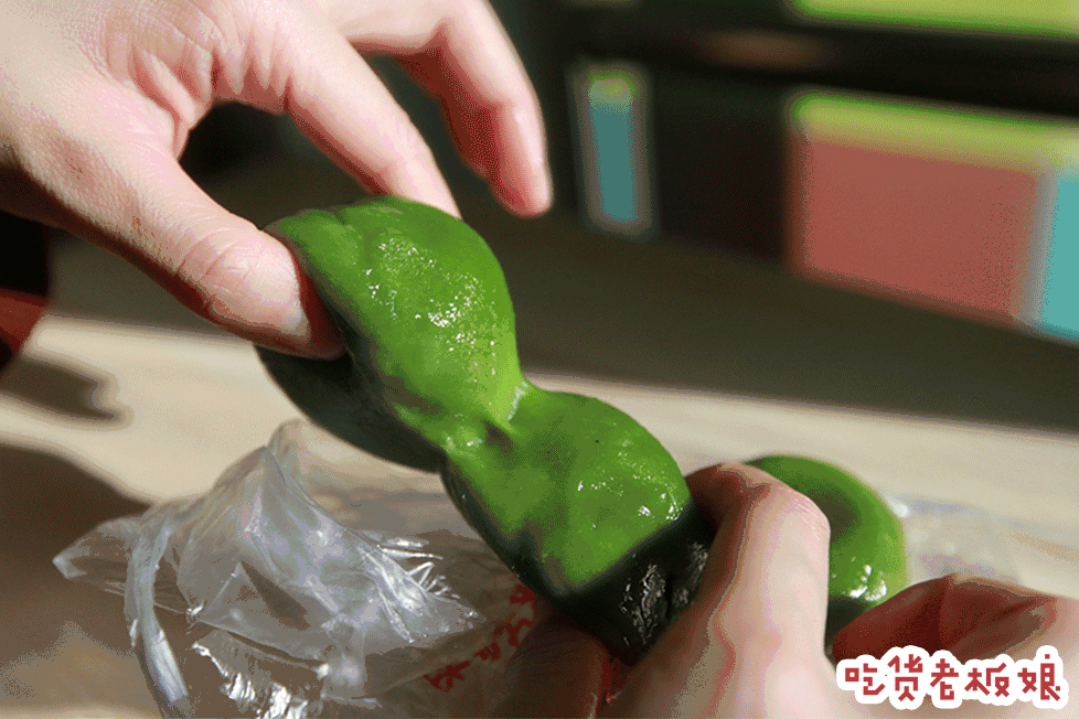 看看这个皮的颜色,这才是纯天然无添加,晓得了伐!肉眼可见这个皮糯韧绵软,重点是冷食就这般软糯!青团皮里除了艾草香,还有薄荷的味道,可以说是惊艳了!