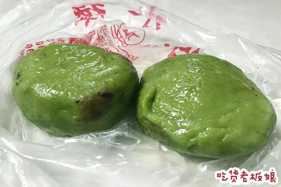 这家的青团子造型很独特,一看就能知道是人和园的,有豆沙馅和芝麻馅。