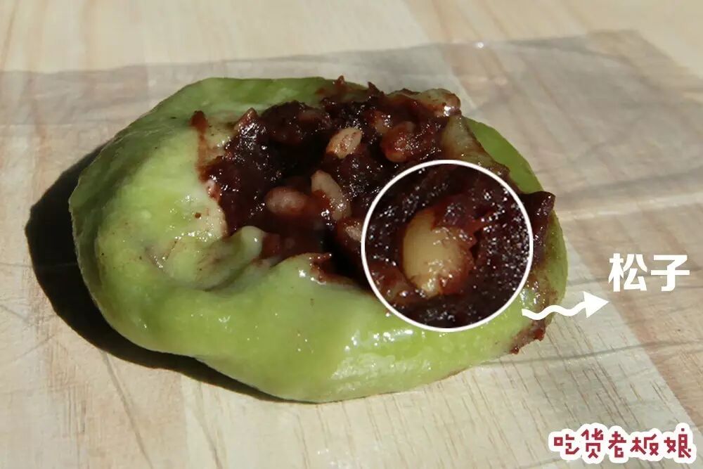 豆沙馅儿里还放了非常多的松子仁,一口下去层次感丰富。艾草的清香、松子仁的香味、加上薄荷在口腔里相互交融,豆沙香甜绵密,肥而不腴,只有吃过才能理解我当时的幸福感!