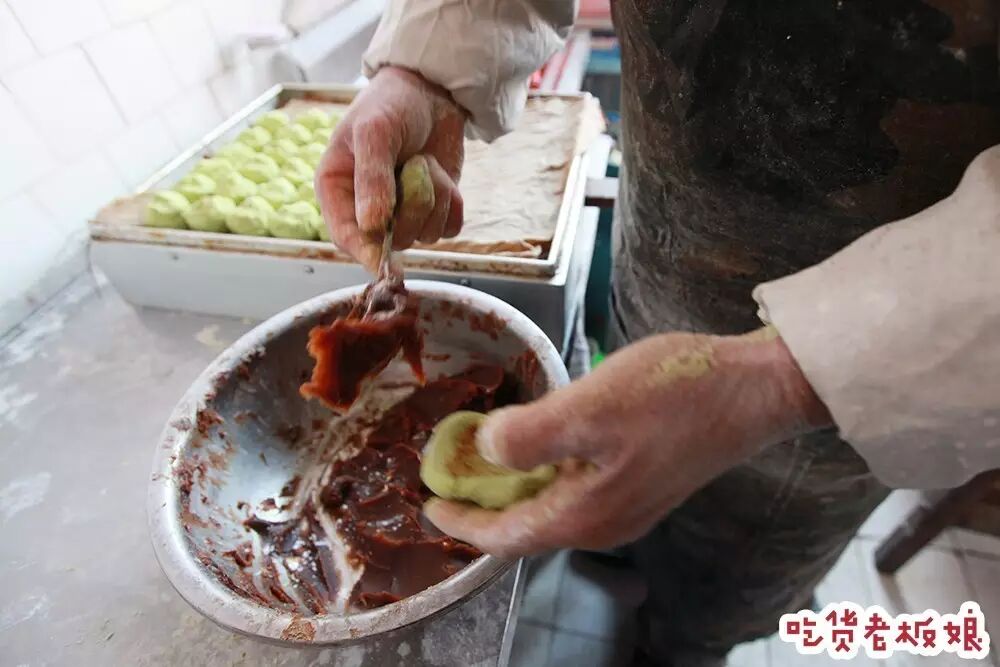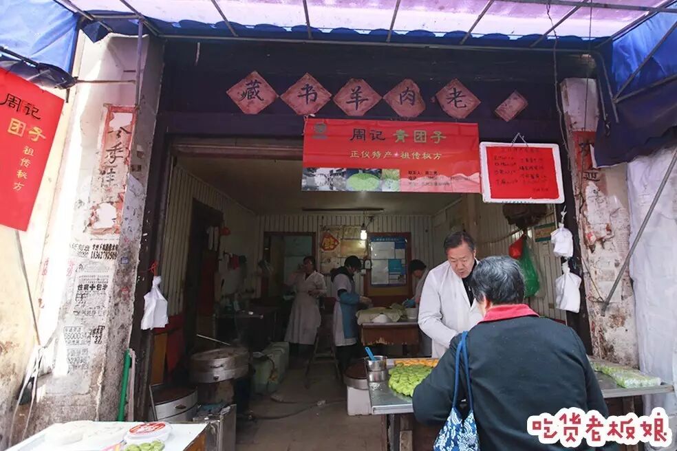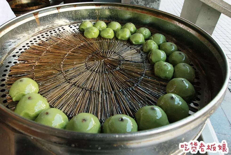 这家小店虽然店面破败,但味道非常出彩,青团是老师傅每天现做的。